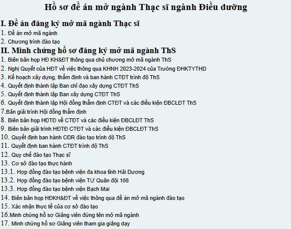 Hồ sơ đề án mở ngành Thạc sĩ ngành Điều dưỡng Đề án đăng ký