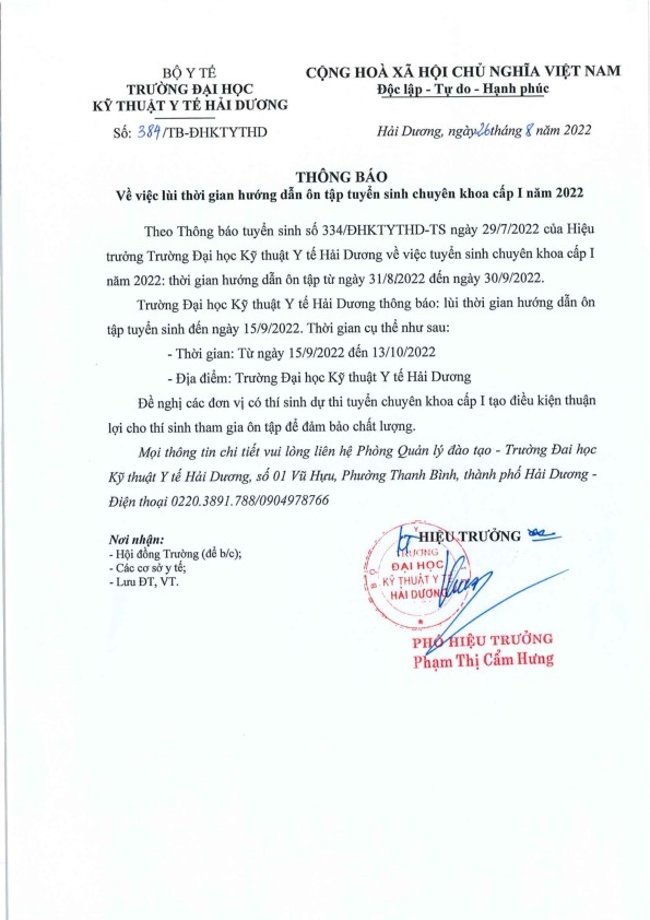 TRƯỜNG ĐẠI HỌC KỸ THUẬT Y TẾ HẢI DƯƠNG