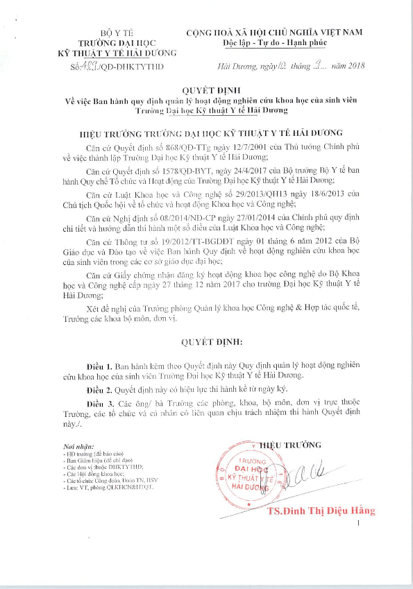 TRƯỜNG ĐẠI HỌC KỸ THUẬT Y TẾ HẢI DƯƠNG