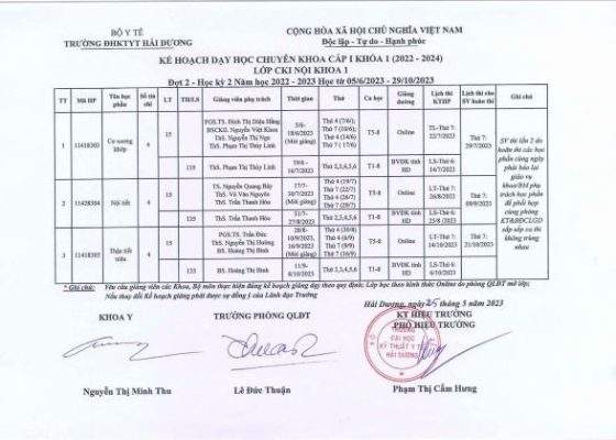 Thông tin đào tạo Chuyên khoa I KẾ HOẠCH DẠY HỌC CKI ĐỢT 2 – HỌC KỲ 2 NĂM HỌC 2022 – 2023 (NGÀY 25/5/2023) Author: xuan tran