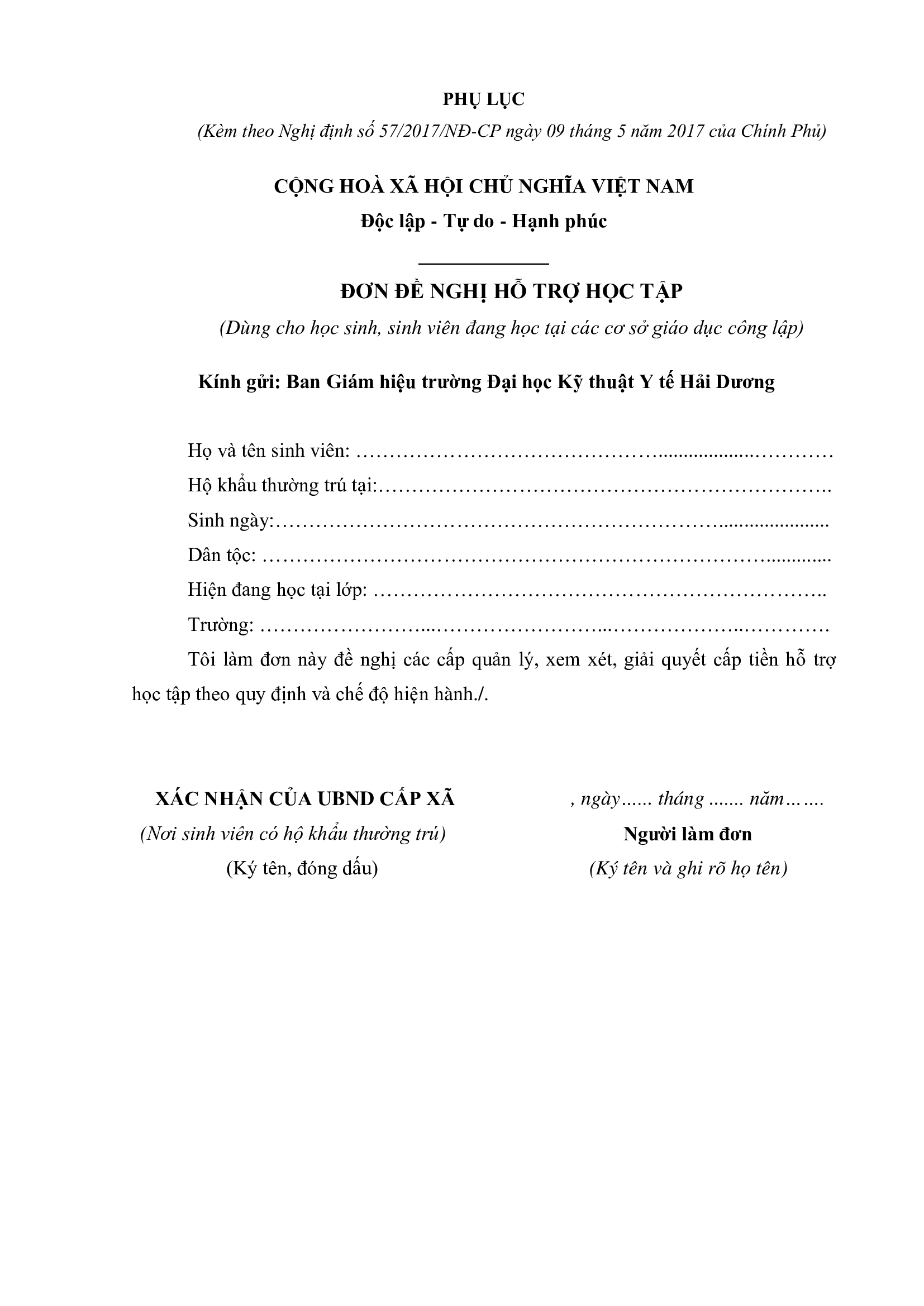 2025. ĐƠN XIN HỖ TRỢ HỌC TẬP