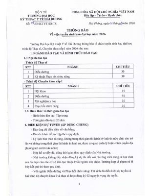 TRƯỜNG ĐẠI HỌC KỸ THUẬT Y TẾ HẢI DƯƠNG