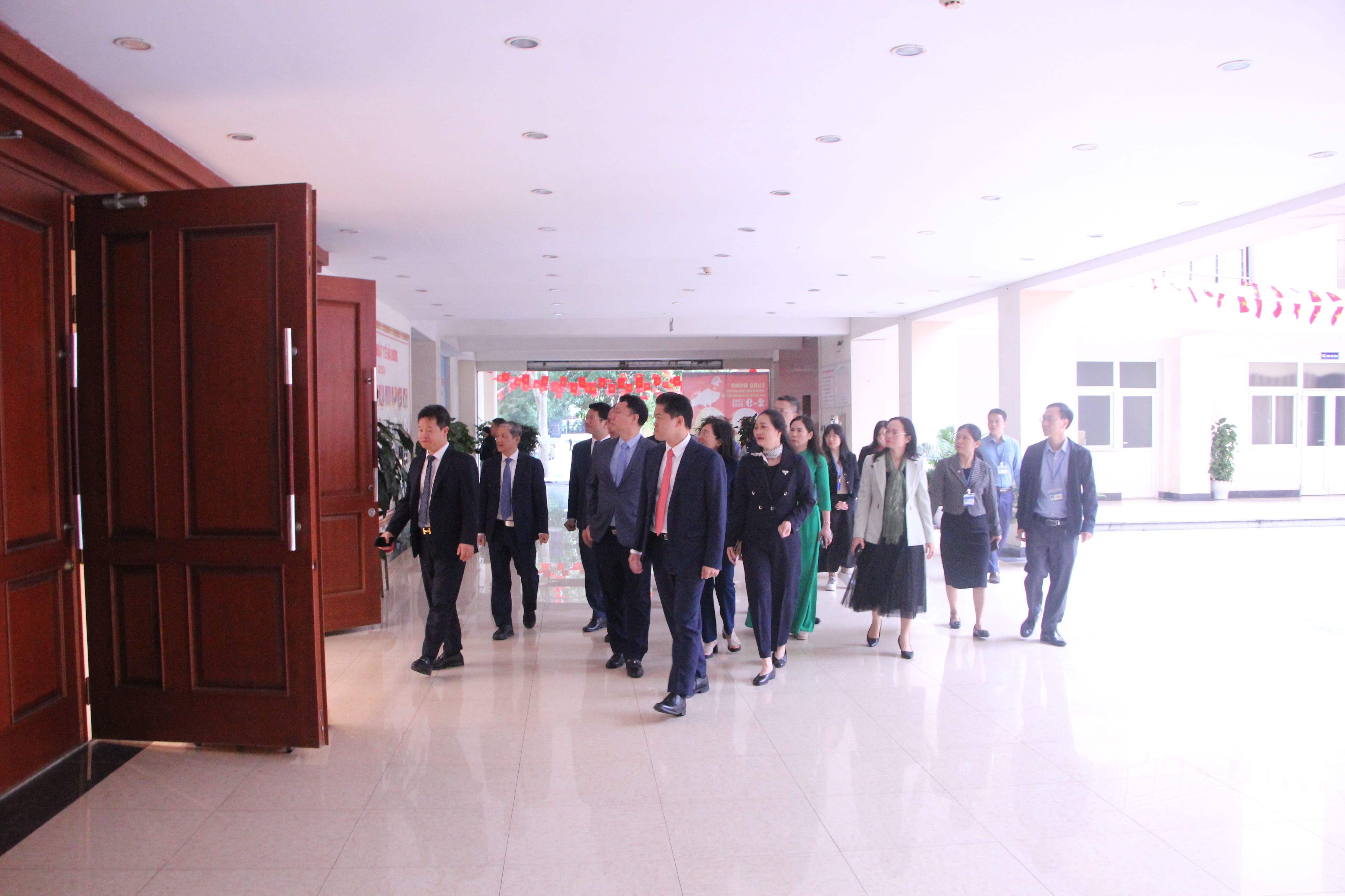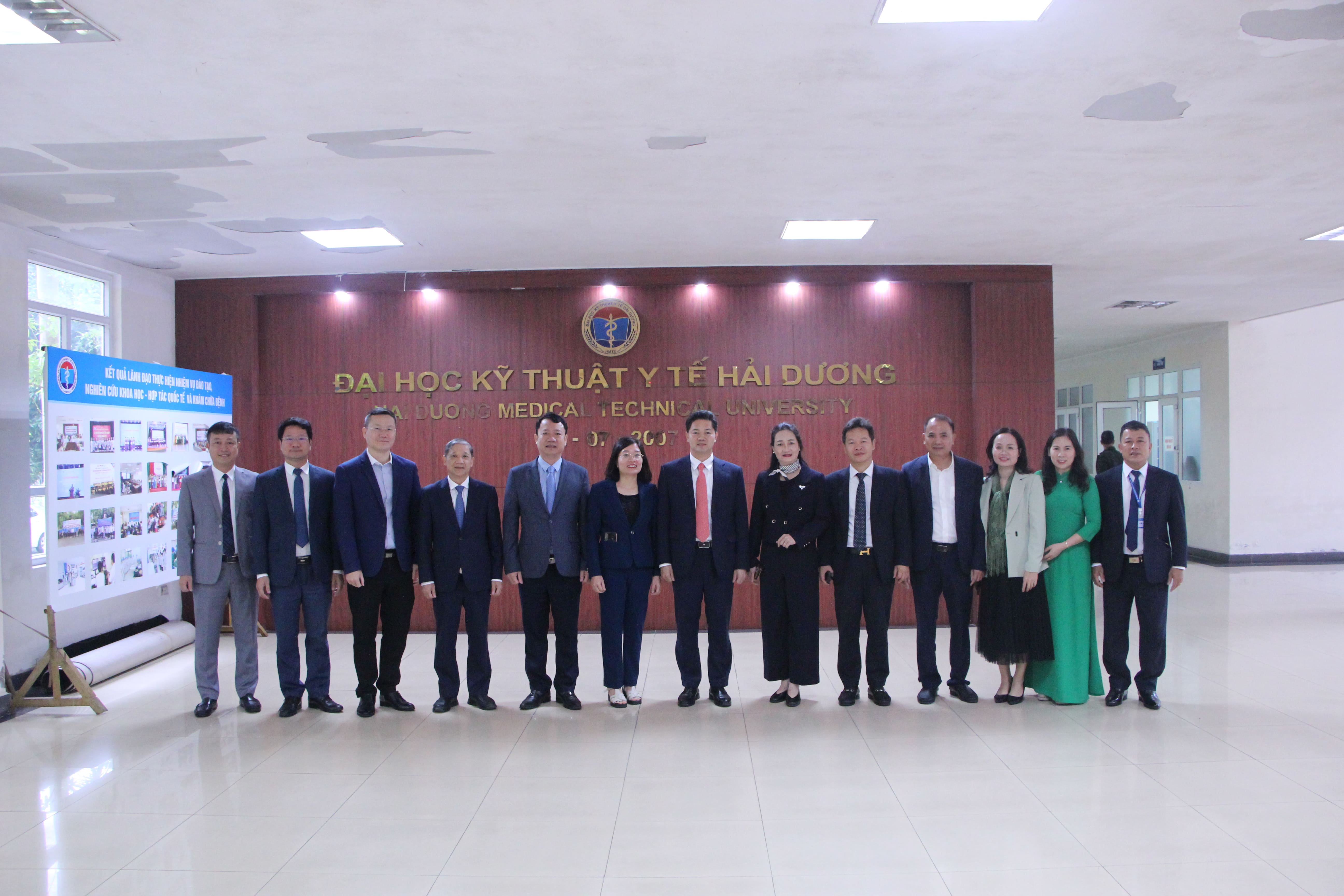 Tiếp đoàn công tác, về phía Trường Đại học Kỹ thuật Y tế Hải Dương có PGS.TS Đinh Thị Diệu Hằng – Bí thư Đảng ủy, Chủ tịch Hội đồng trường; TS.BS. Phạm Thị Cẩm Hưng – Hiệu trưởng, TS.BS. Lê Đức Thuận – Phó Hiệu trưởng, cùng đại diện cán bộ quản lý các Phòng, Khoa, Bộ môn.