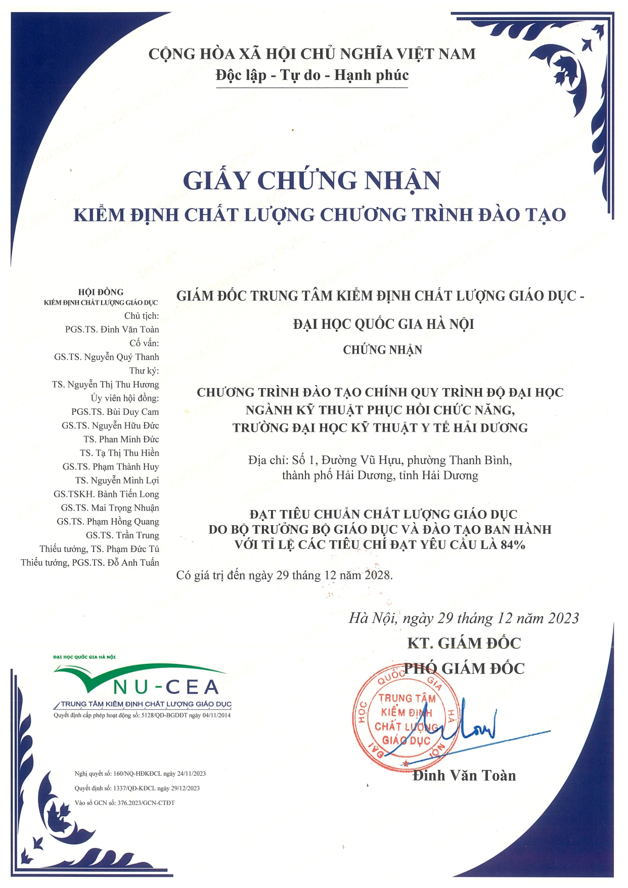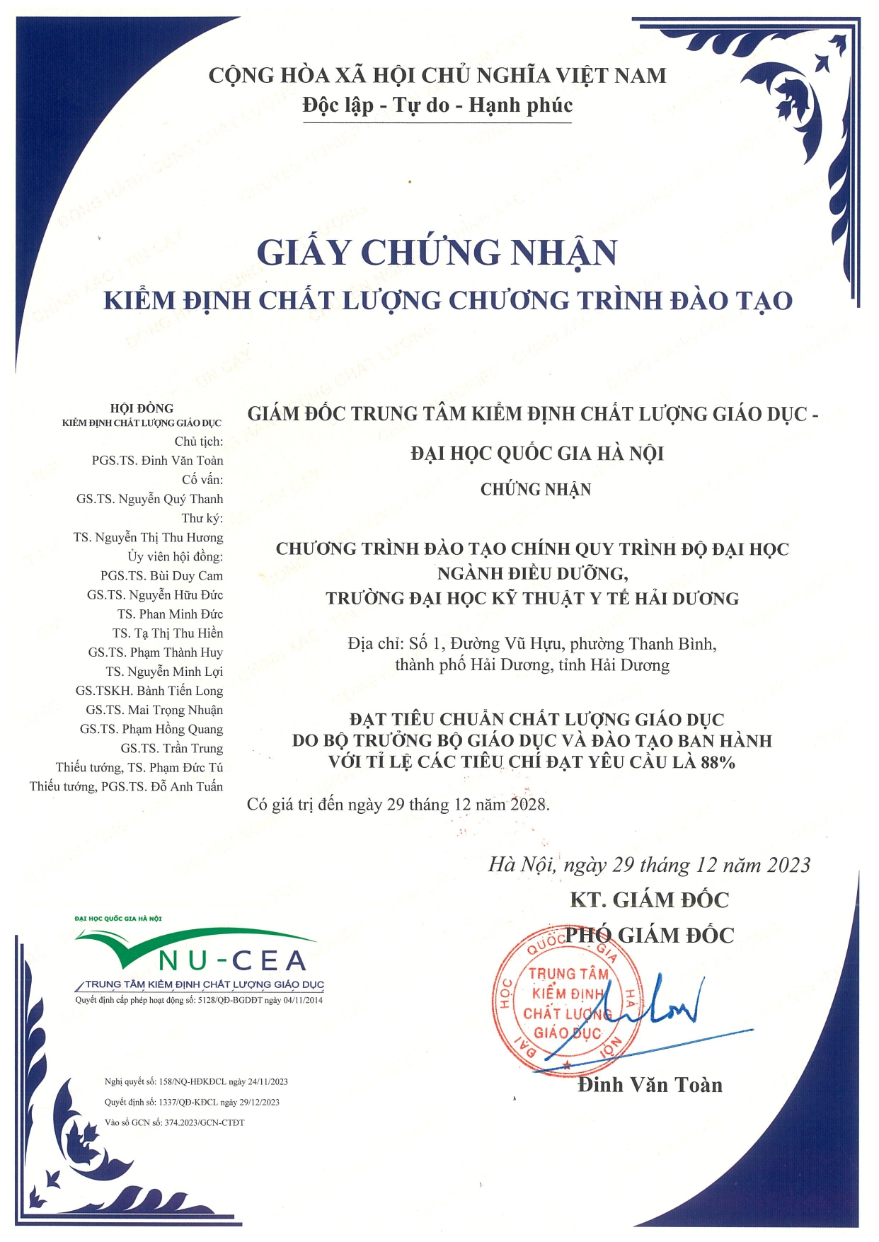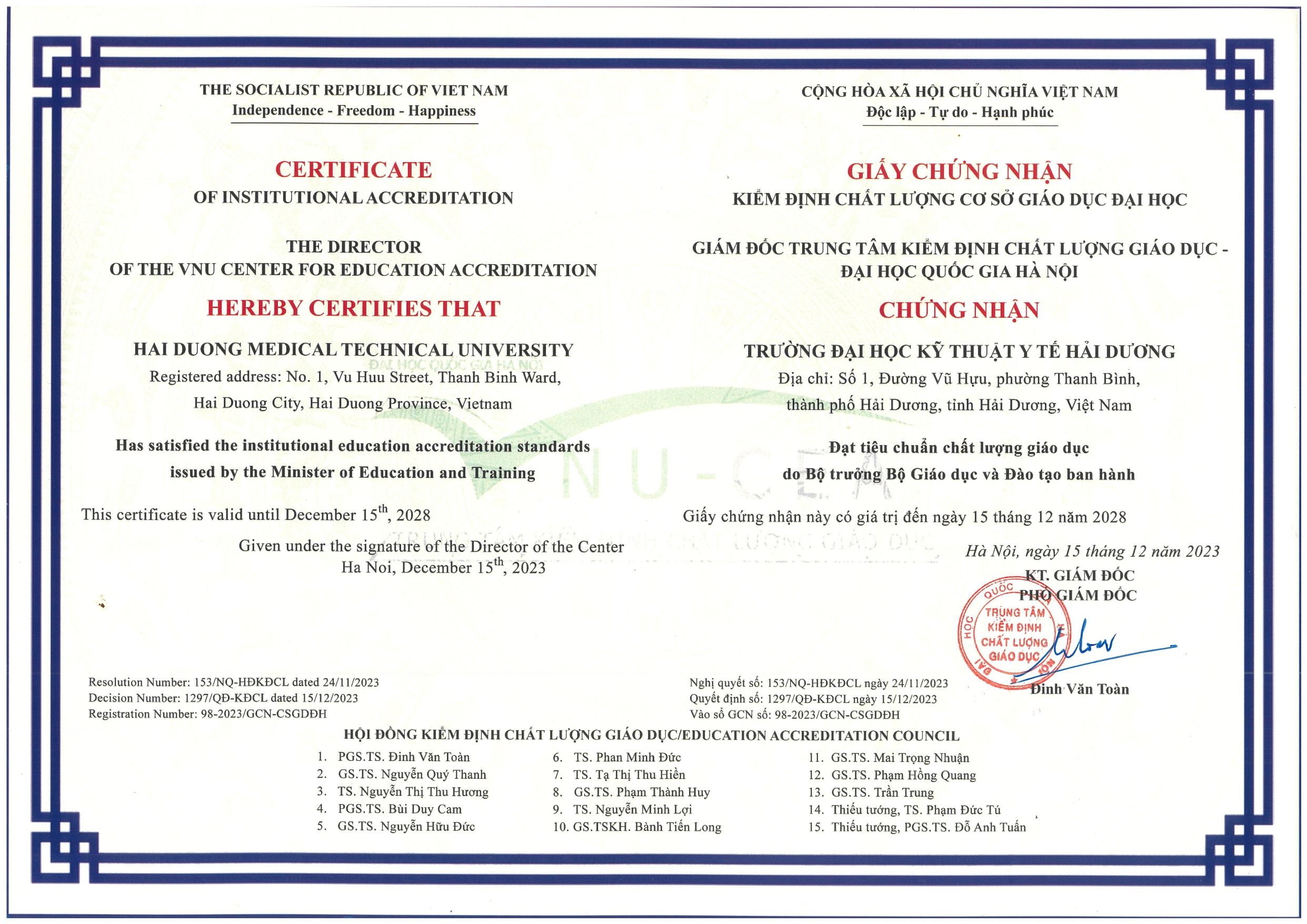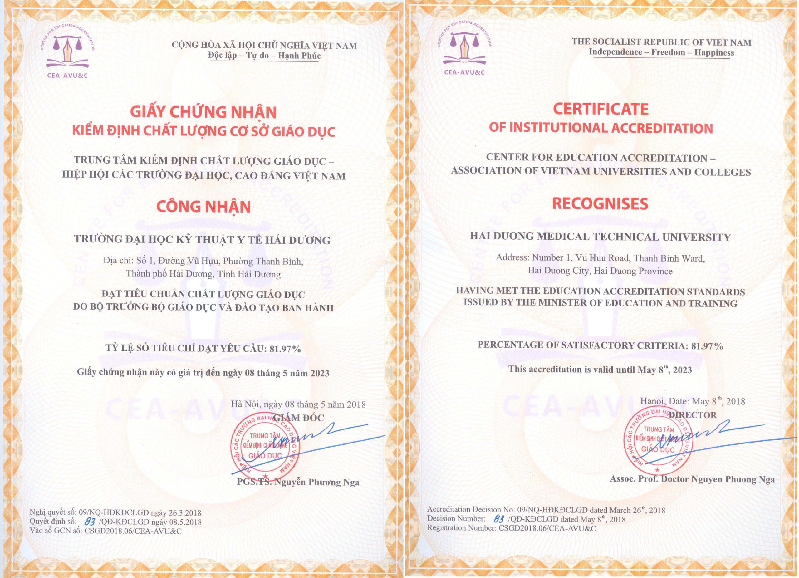 | 2 | Kết quả kiểm định chất lượng trường Đại học Kỹ thuật Y tế Hải Dương giai đoạn 2018-2023 | Chi tiết |