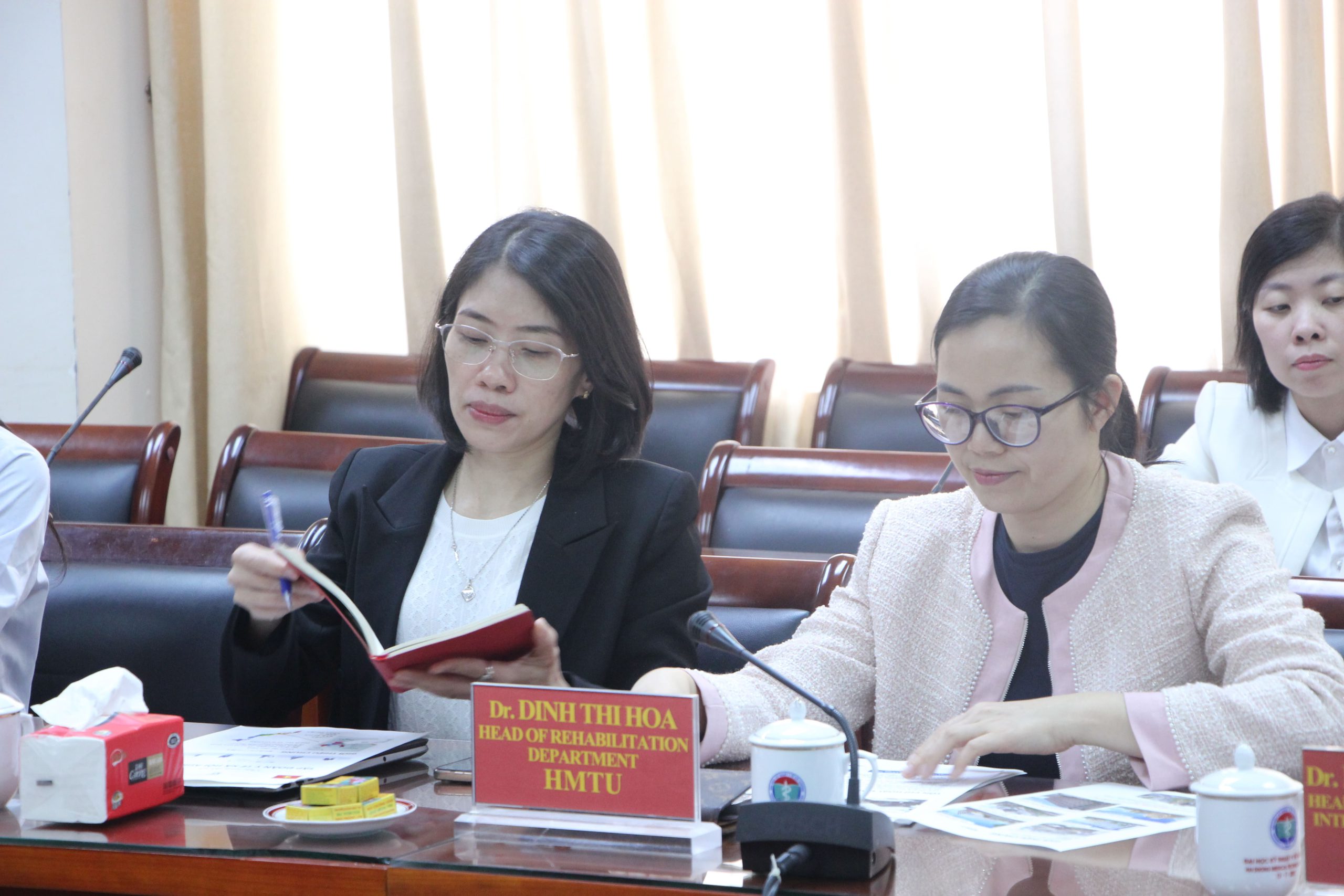 Về phía Nhà trường, có TS.BS. Phạm Thị Cẩm Hưng – Hiệu trưởng Nhà trường, Phòng QLKHCN&HTQT, Khoa Phục hồi chức năng và Trung tâm Nghiên cứu và Đào tạo theo nhu cầu xã hội.