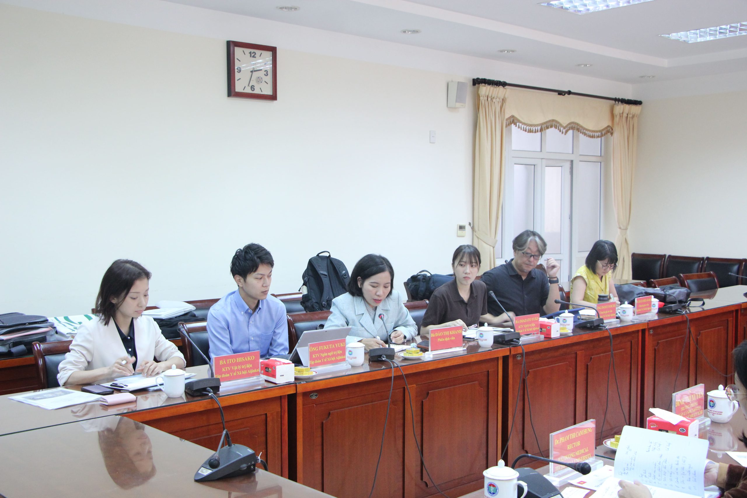 Chiều ngày 06/11/2025, Trường Đại học Kỹ thuật Y tế Hải Dương đã tiếp đón và làm việc với đoàn đại biểu Tập đoàn Y tế Xã hội Aijinkai do Bà Ito Hisako làm Trưởng đoàn.
