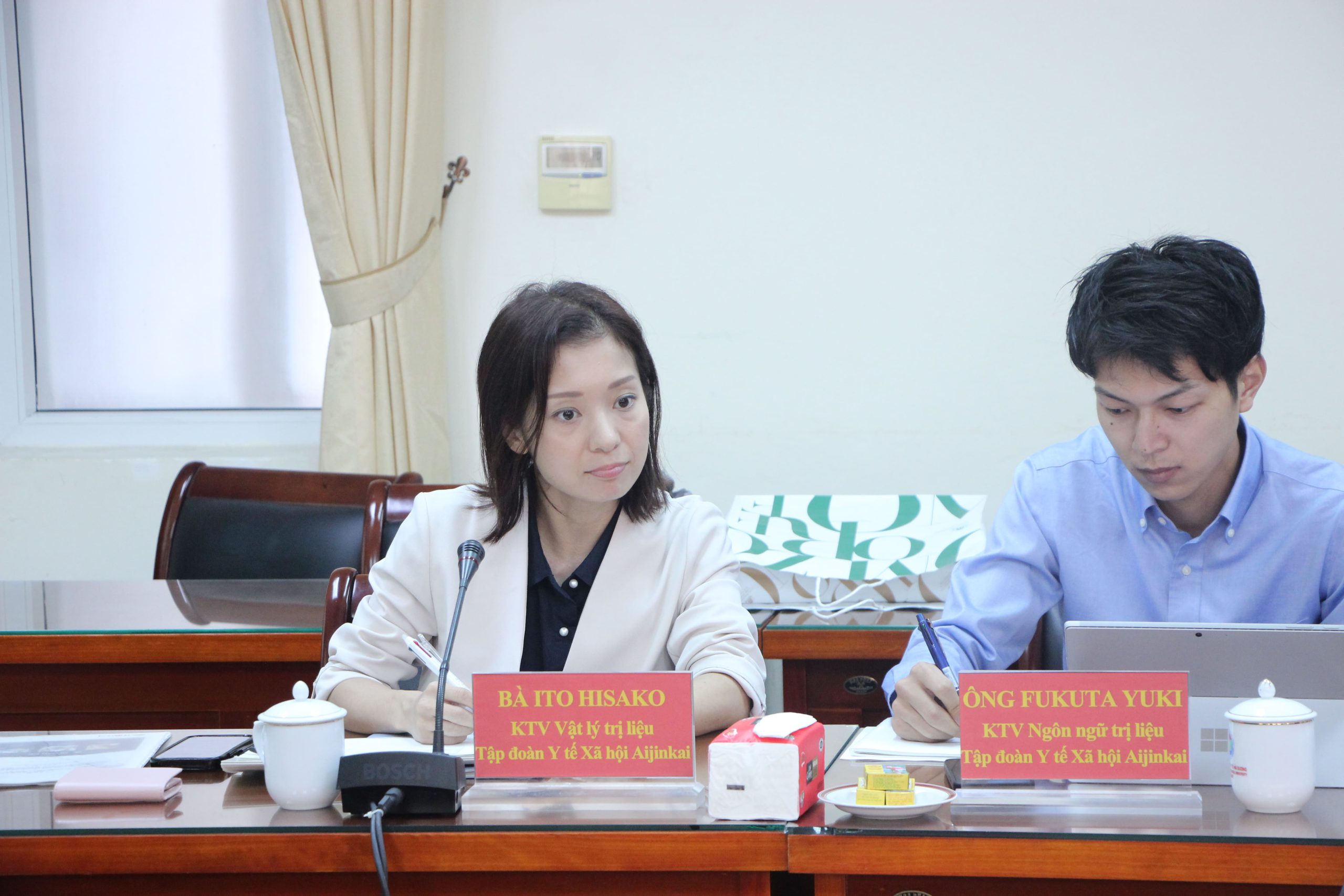 Đại diện Tập đoàn Y tế Xã hội Aijinkai – Bà Ito Hisako trân trọng cám ơn sự đón tiếp của Nhà trường và giới thiệu về hoạt động của Tập đoàn Y tế Xã hội Aijinkai – một trong những tập đoàn y tế hàng đầu của Nhật Bản với mục tiêu cung cấp dịch vụ y tế toàn diện, từ khám chữa bệnh, phục hồi chức năng đến chăm sóc sức khoẻ dài hạn cho người cao tuổi.