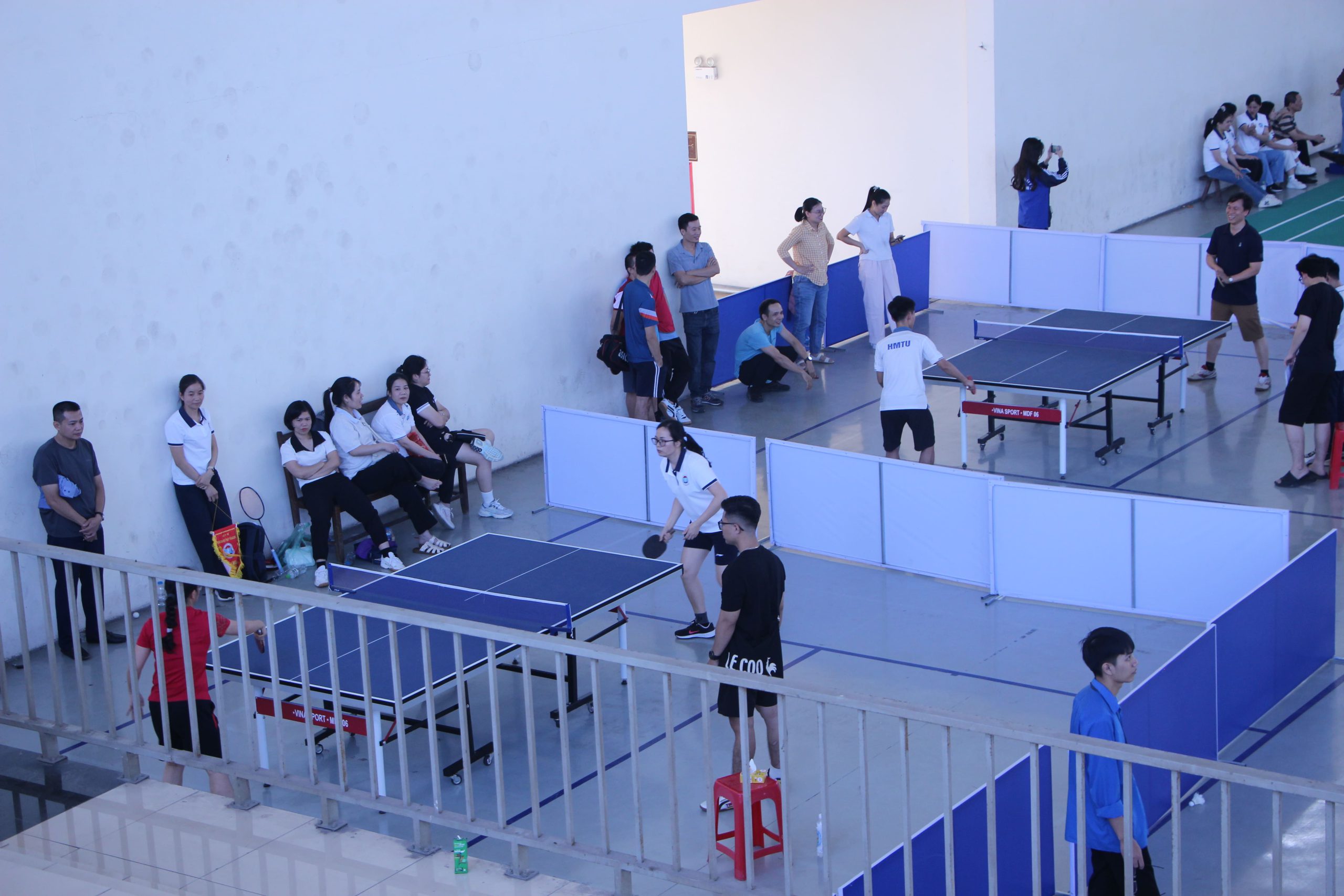 Hội thao năm 2025 đã diễn ra từ ngày 6/11-13/11/2025, bao gồm nhiều nội dung thi đấu hấp dẫn như bóng bàn, cầu lông, pickleball, kéo co … Các đội tuyển của các khoa, bộ môn và phòng ban đã có sự chuẩn bị kỹ lưỡng, thể hiện tinh thần thi đấu trung thực, cao thượng và quyết tâm giành thành tích cao.
