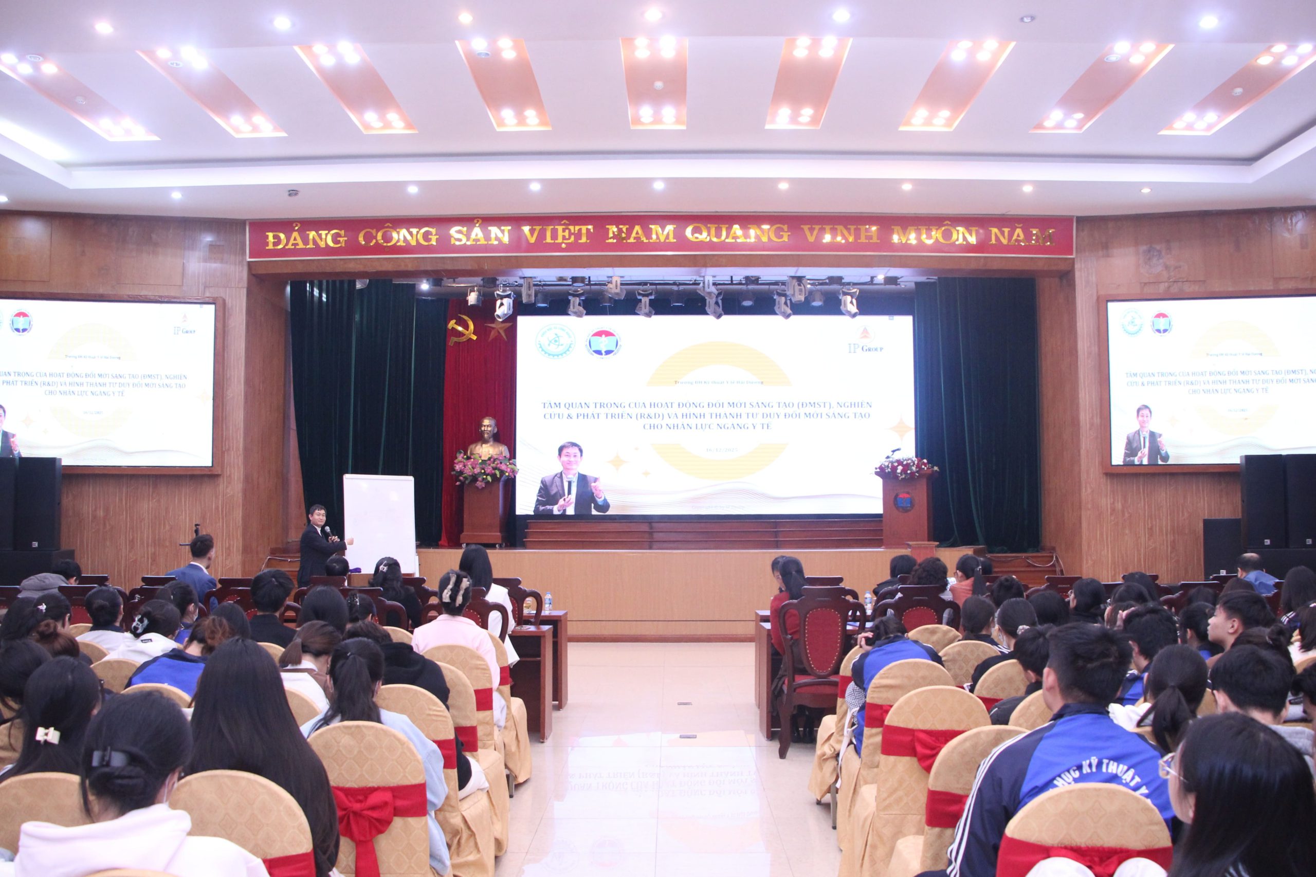 Ngày 16/12/2025, Trường Đại học Kỹ thuật Y tế Hải Dương phối hợp với Sở Khoa học và Công nghệ thành phố Hải Phòng tổ chức Tọa đàm “Tư duy khởi nghiệp và đổi mới sáng tạo tạo trong ngành y dược”.