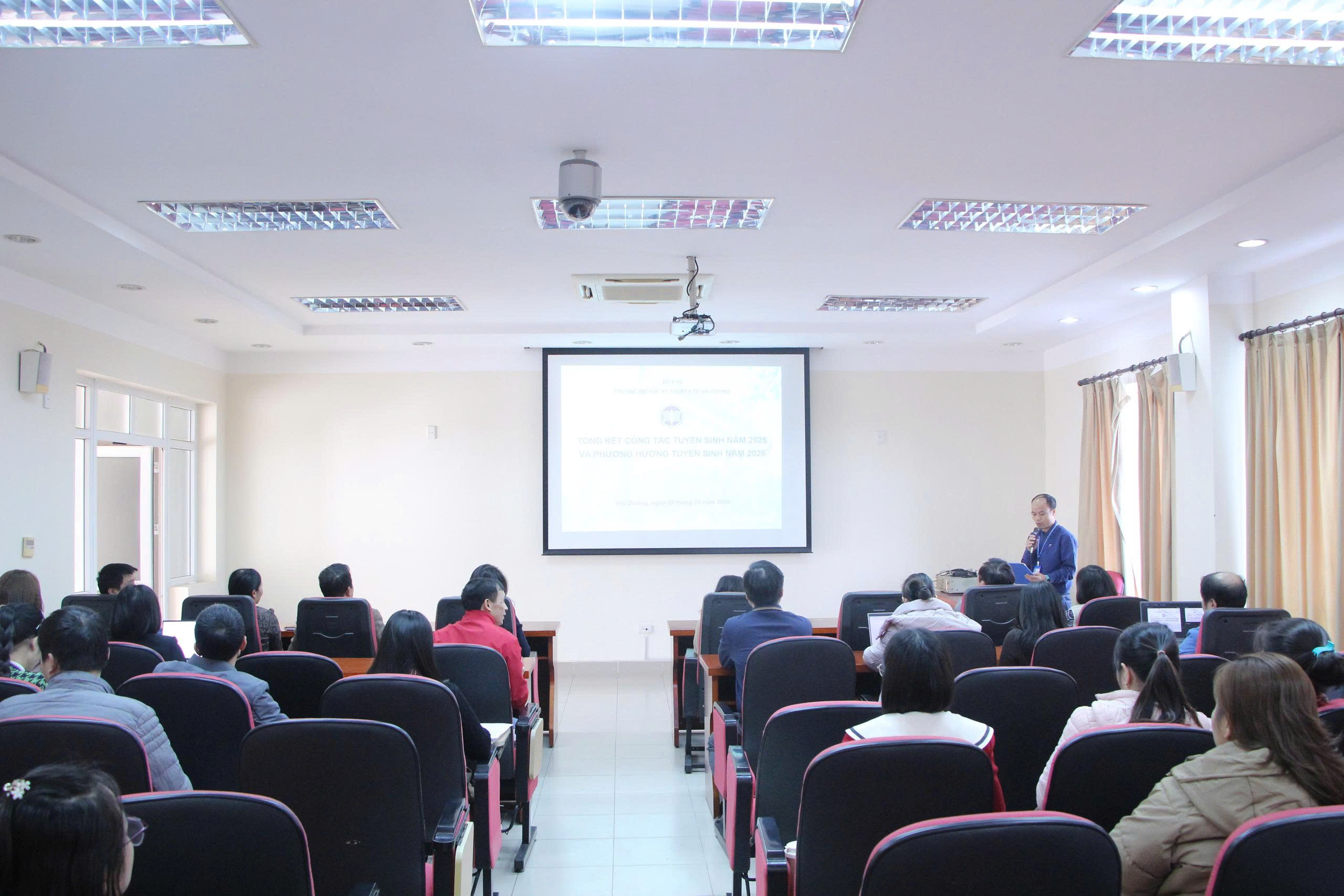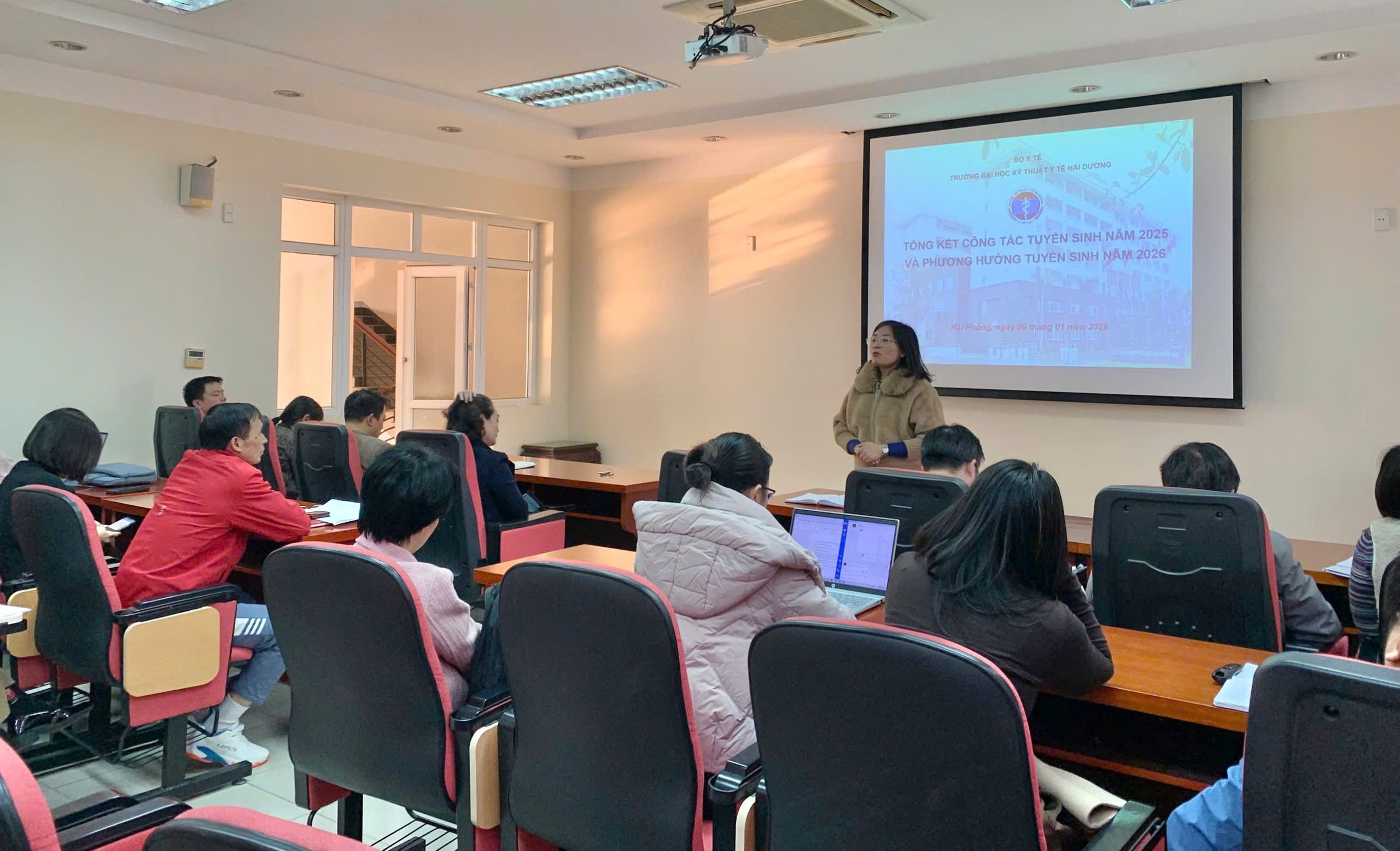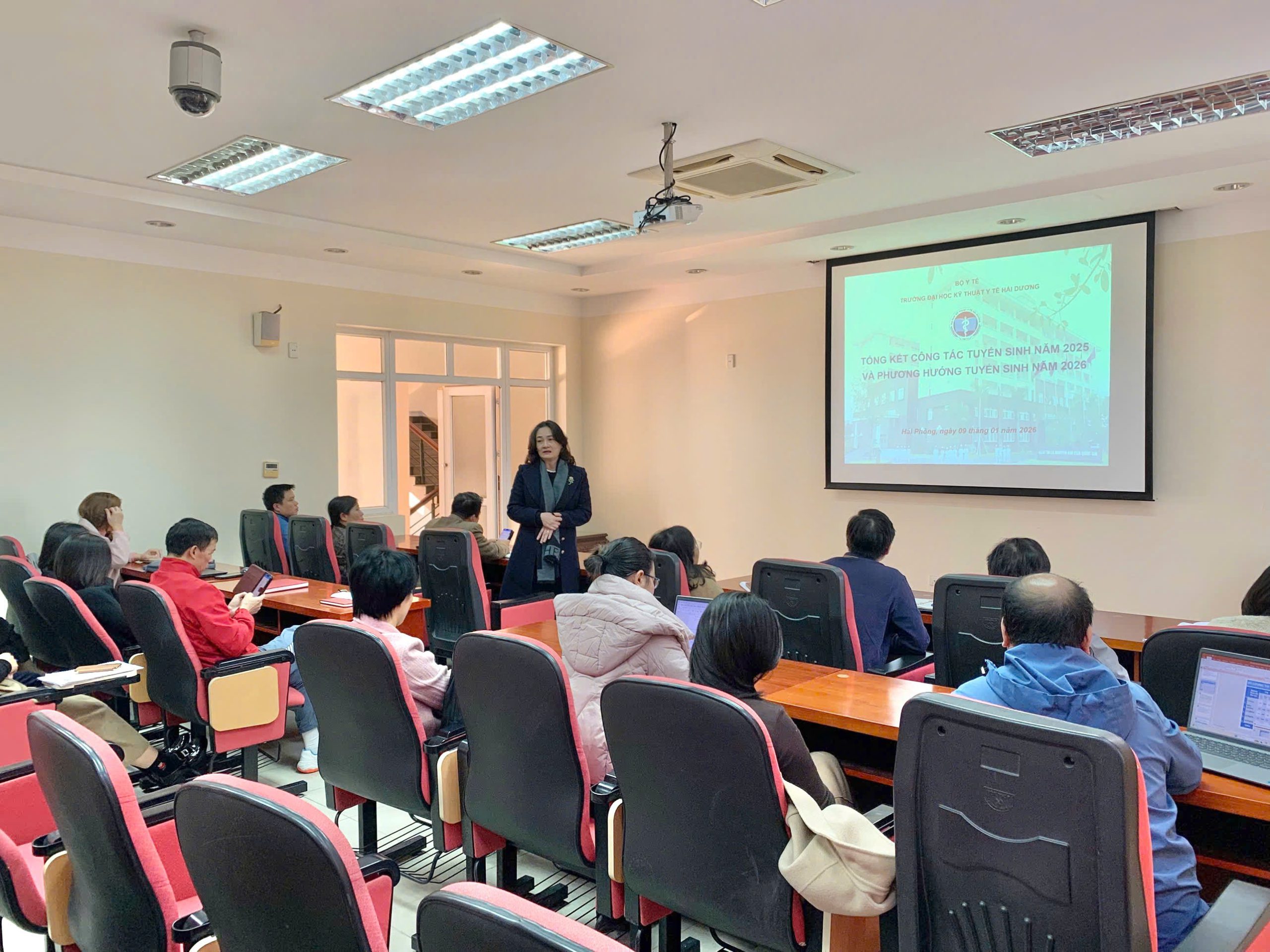 Ngày 09/01/2026, Trường Đại học Kỹ thuật Y tế Hải Dương đã tổ chức Hội nghị tổng kết công tác tuyển sinh năm 2025 và triển khai phương hướng tuyển sinh năm 2026. Hội nghị là dịp để Nhà trường đánh giá toàn diện kết quả đạt được, chỉ ra những khó khăn, thách thức và thống nhất các giải pháp nhằm nâng cao chất lượng tuyển sinh trong thời gian tới.