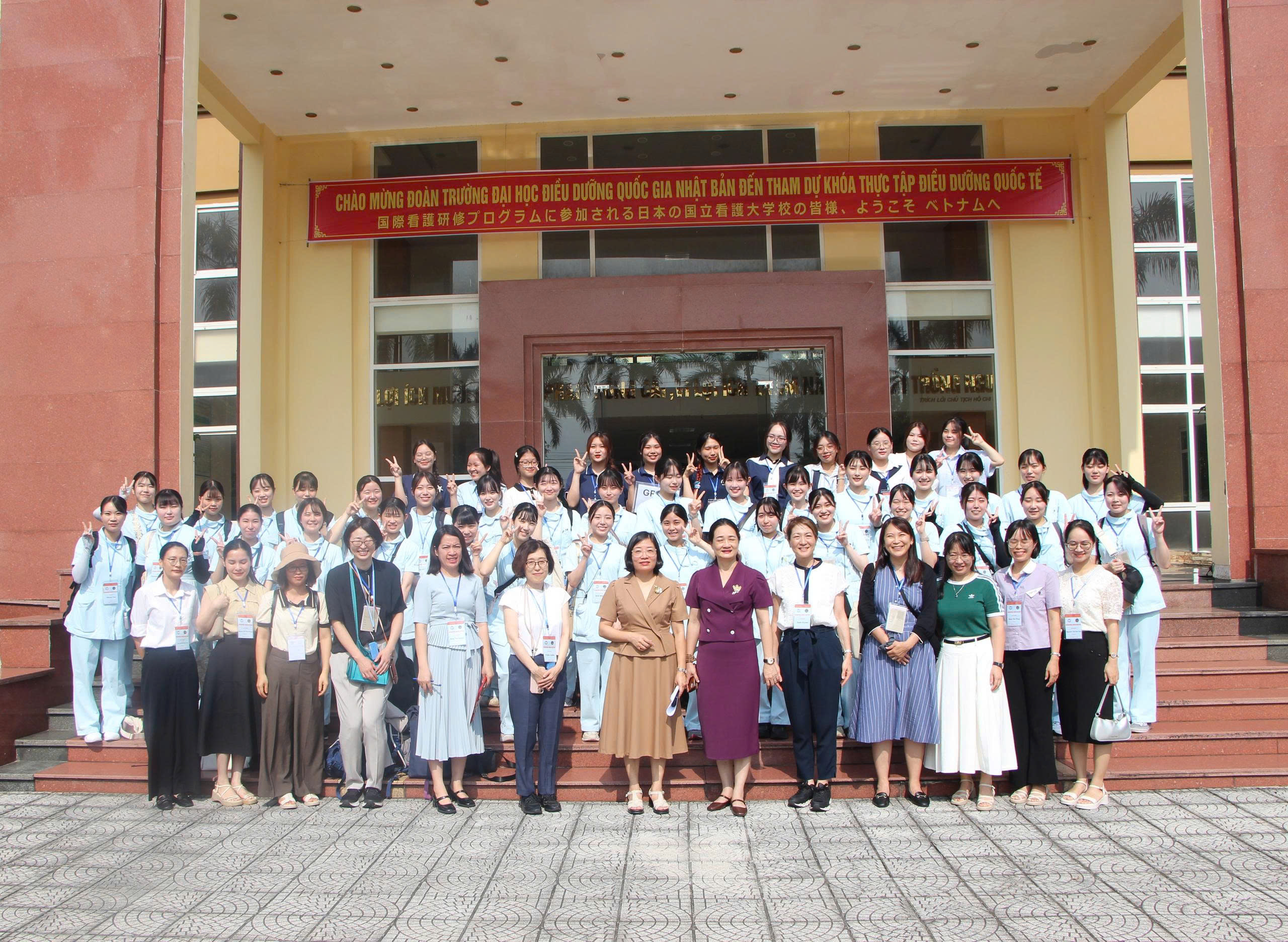 Về phía Trường Đại học Điều dưỡng Quốc gia Nhật Bản có GS. Kyoko Sudo – Trưởng đoàn, GS. Fujita Junko, Trợ lý giáo sư Umeda Aya, Trợ lý giáo sư Nomura Satori, cùng 32 sinh viên Trường Đại học Điều dưỡng Quốc gia Nhật Bản.