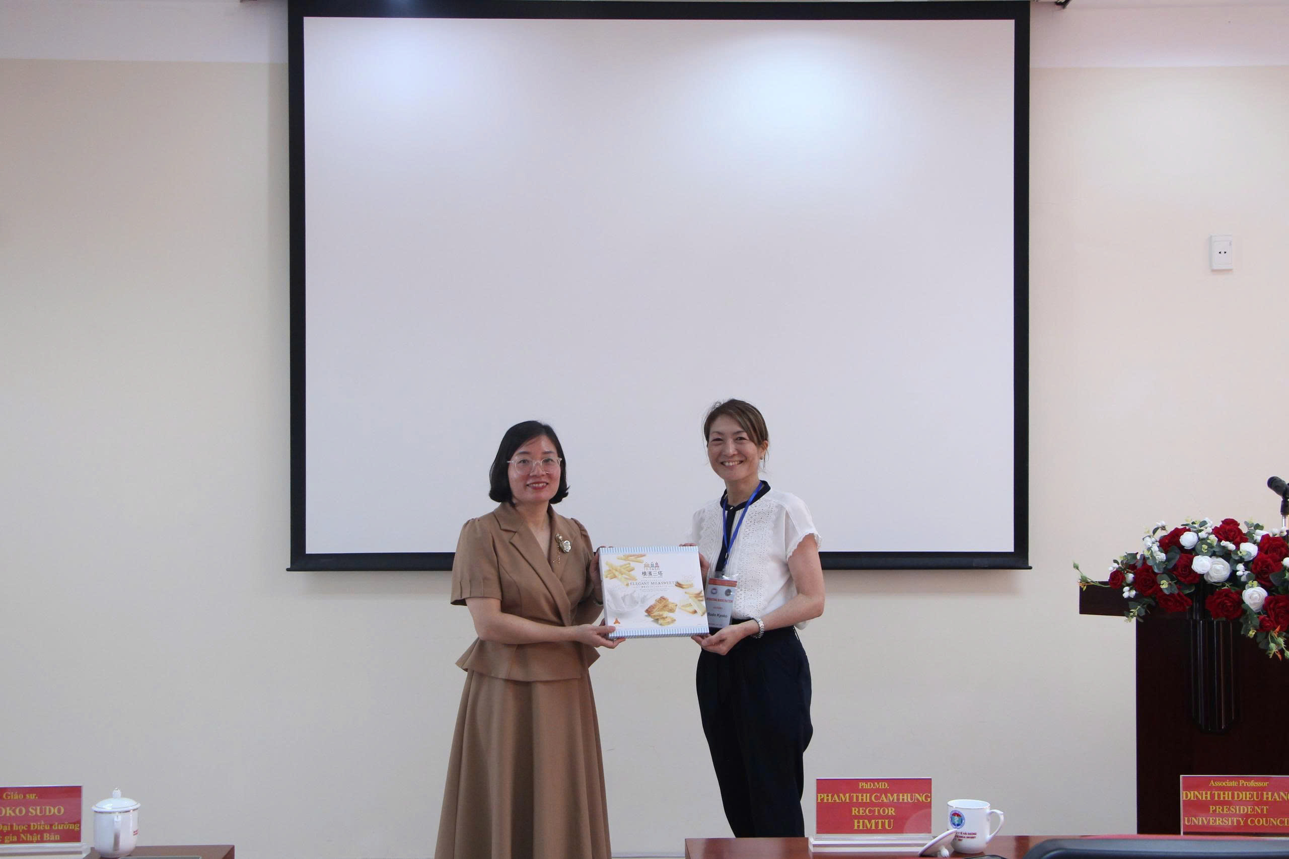 Phát biểu khai mạc Khoá thực tập TS.BS. Phạm Thị Cẩm Hưng – Hiệu trưởng, chào mừng đoàn sinh viên Nhật Bản đến thực tập tại Việt Nam. Đây là sự kiện có ý nghĩa đặc biệt quan trọng nhằm tăng cường hợp tác quốc tế, giao lưu học thuật và hiểu biết văn hóa giữa sinh viên hai nước Việt Nam – Nhật Bản. Đồng thời là cơ hội để sinh viên Nhật Bản trải nghiệm thực tiễn hệ thống y tế Việt Nam, quan sát công tác chăm sóc người bệnh của điều dưỡng viên tại các bệnh viện, cũng như tìm hiểu hoạt động đào tạo điều dưỡng tại Việt Nam. Nhân dịp này, TS.BS. Phạm Thị Cẩm Hưng trân trọng cám ơn Lãnh đạo Trường Đại học Điều dưỡng Quốc gia Nhật Bản luôn đồng hành và hỗ trợ thúc đẩy mối quan hệ hợp tác giữa hai Trường.