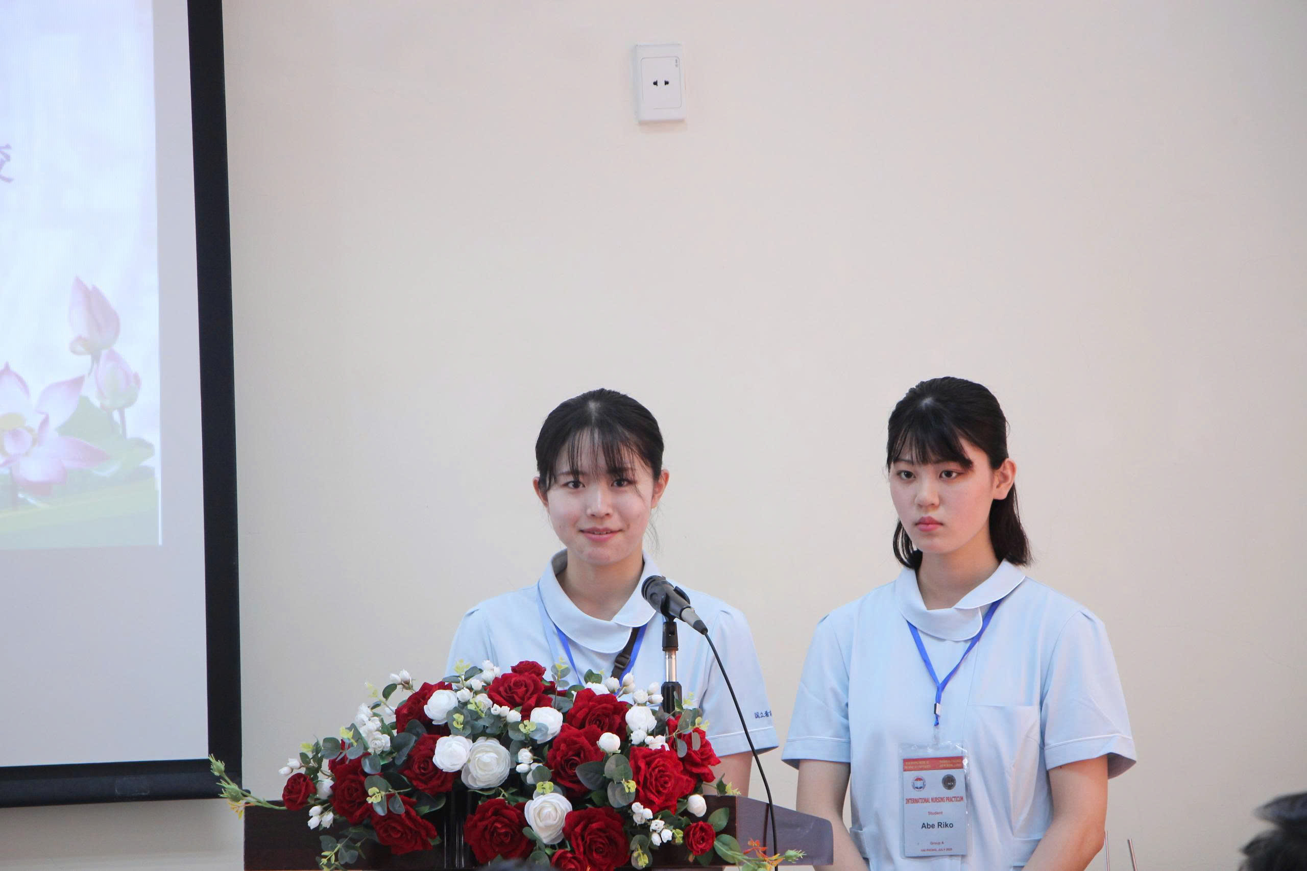 Tại buổi khai mạc, sinh viên Nhật Bản cũng đã có bài phát biểu cám ơn Trường Đại học Kỹ thuật Y tế Hải Dương đã tạo mọi điều kiện thuận lợi để sinh viên điều dưỡng Nhật Bản được thực tập ở Việt Nam và xin hứa sẽ tuân thủ mọi quy định của khoá thực tập.