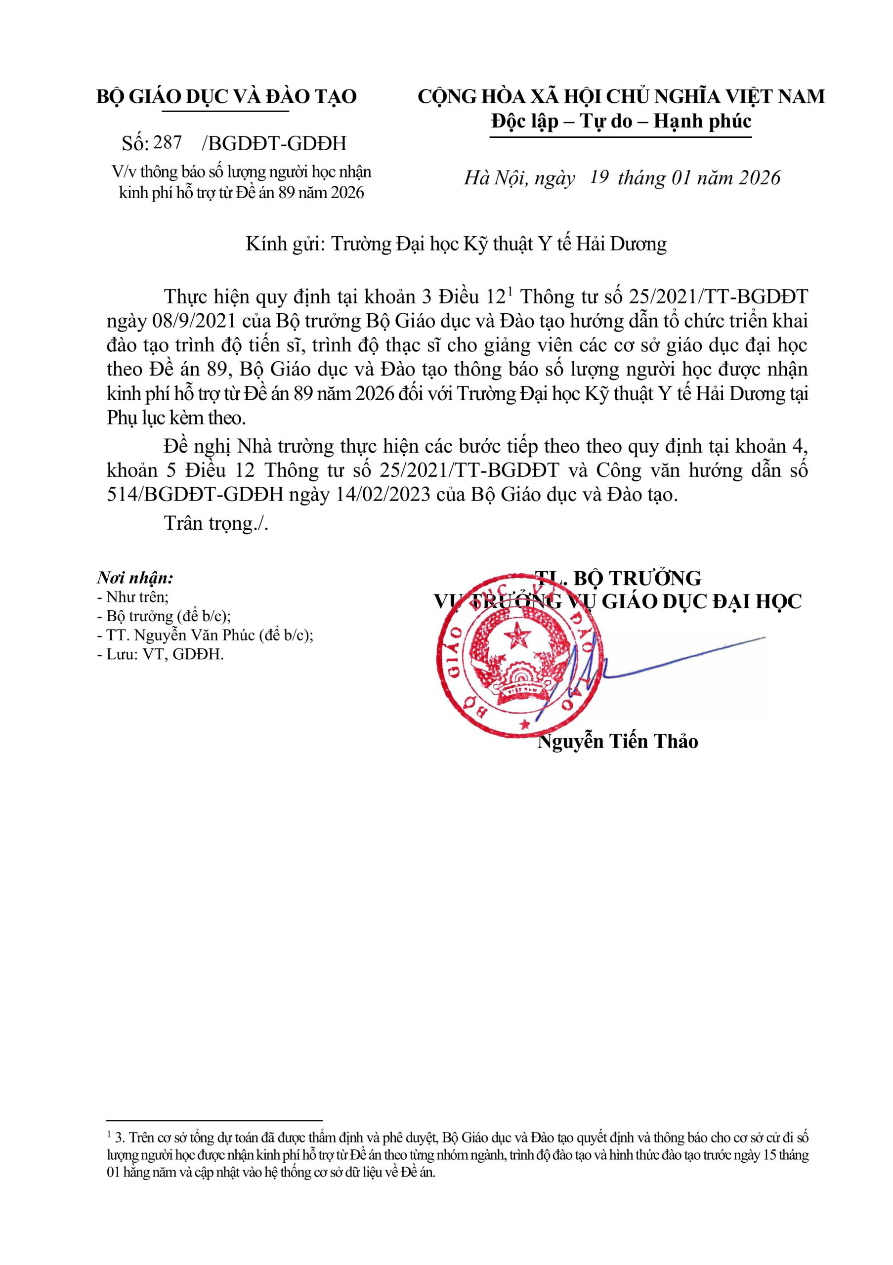 học bổng Thông báo số lượng học bổng cho đề án 89 năm 2026 đối với Trường Đại Học kỹ thuật Y tế Hải Dương Thông tin chi tiết xem tại đây: Author: CNTT&TV HMTU