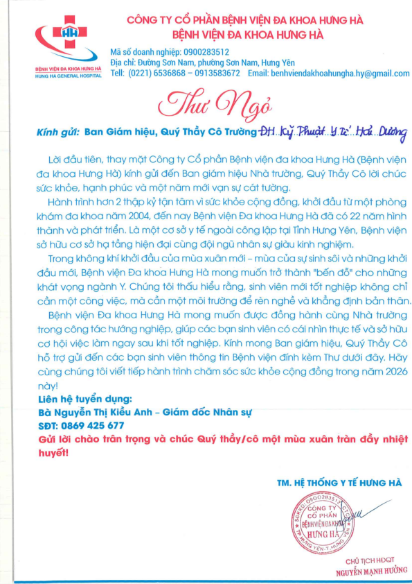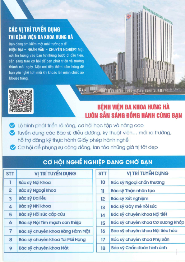 Hướng nghiệp - Việc làm Thông báo tuyển dụng của Công ty Cổ phần Bệnh viện đa khoa Hưng Hà (Bệnh viện đa khoa Hưng Hà) năm 2026 Author: xuan tran