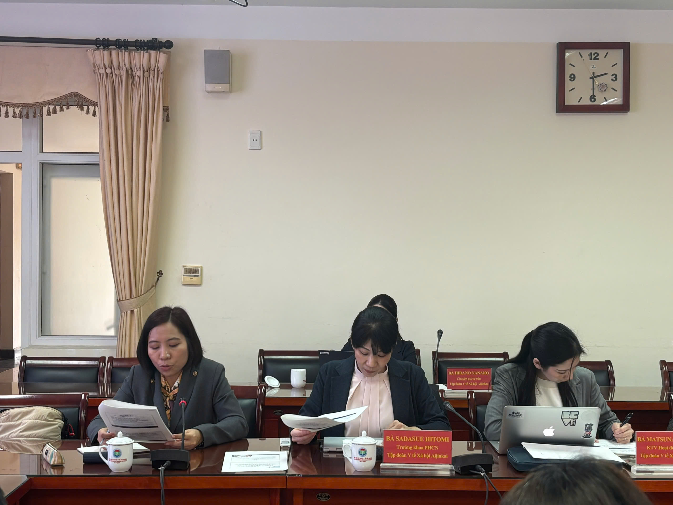 Về phía Tập đoàn Y tế Xã hội Aijinkai có bà Sadasue Hitomi – Trưởng khoa Phục hồi chức năng, cùng các chuyên gia tư vấn và cán bộ chuyên môn của Tập đoàn.