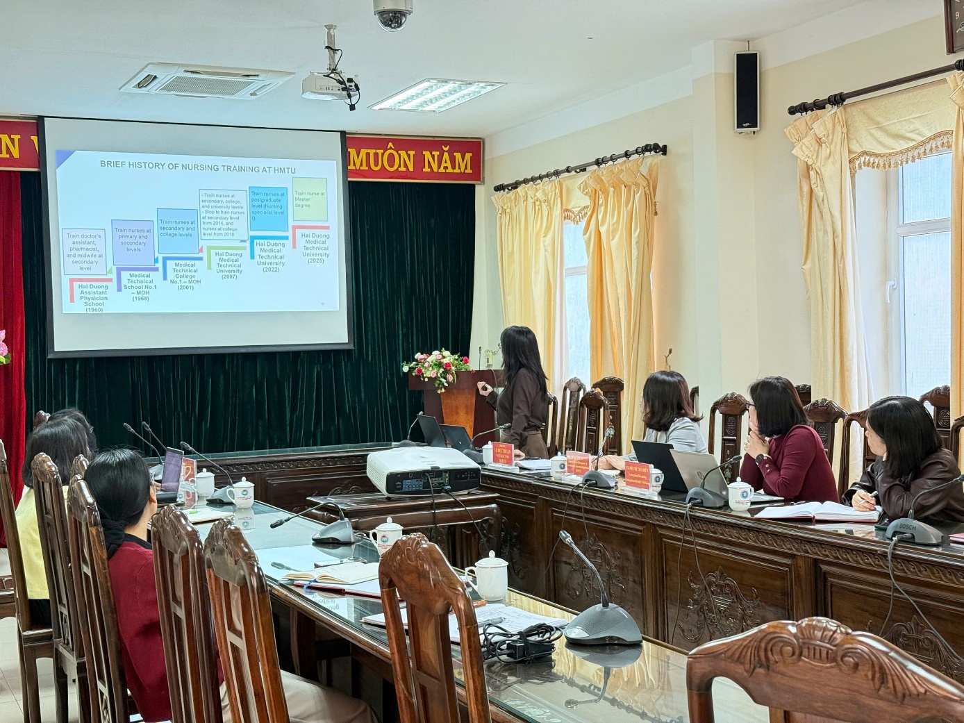 Ngày 10/3/2026, Trường Đại học Kỹ thuật Y tế Hải Dương đã tiếp đón TS. Elizabeth Simon – chuyên gia đánh giá chương trình đào tạo của Chương trình Fulbright, Đại sứ quán Hoa Kỳ – đến làm việc tại Nhà trường.