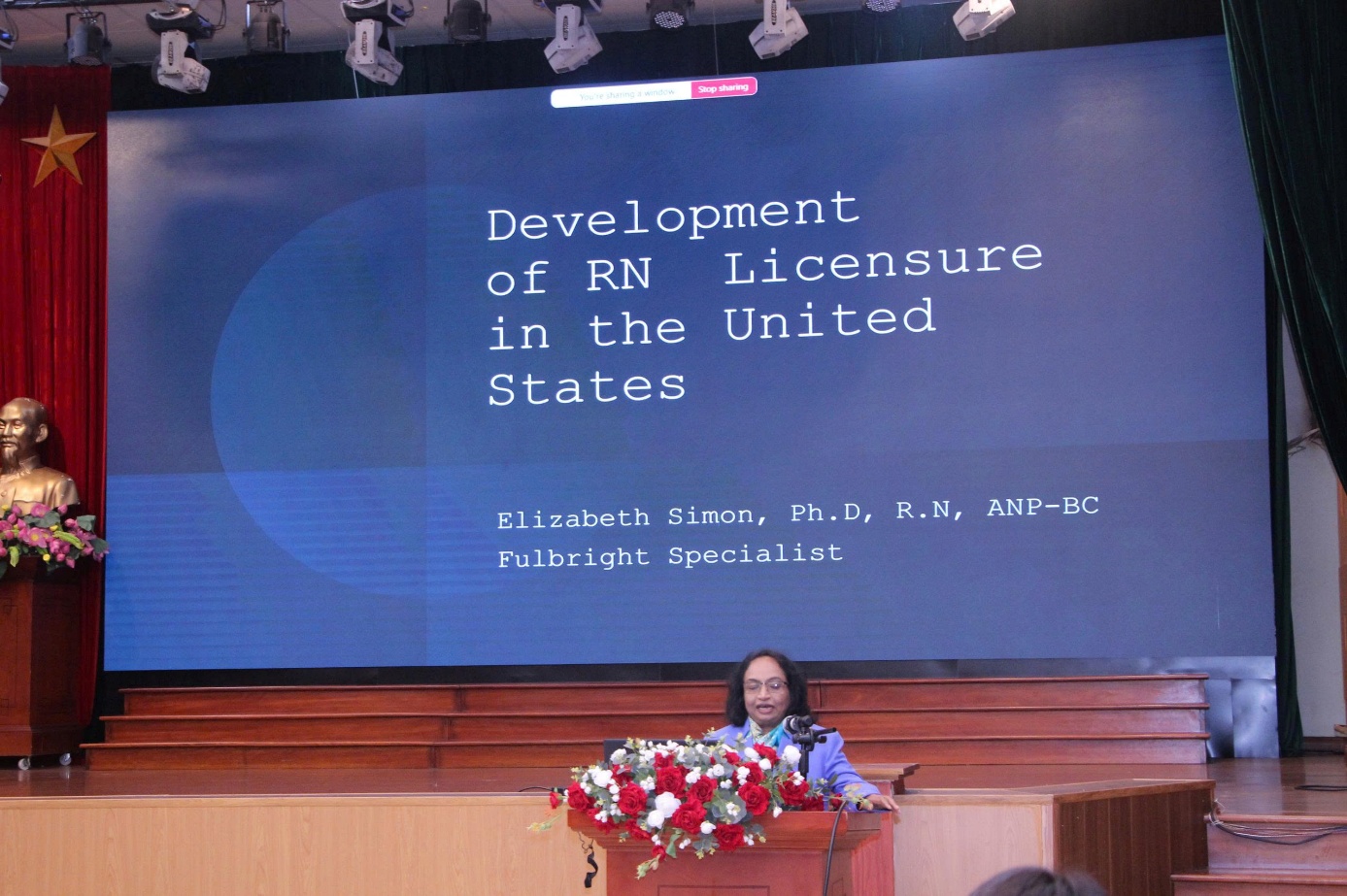 Trong khuôn khổ chuyến công tác của TS. Elizabeth Simon – chuyên gia đánh giá chương trình đào tạo của Chương trình Fulbright, Đại sứ quán Hoa Kỳ từ 9/3-19/4/3026 tại Trường Đại học Kỹ thuật Y tế Hải Dương. Ngày 19/3/2026, chuyên gia đã có buổi chia sẻ về Kỳ thi cấp chứng chỉ hành nghề điều dưỡng tại Hoa Kỳ.