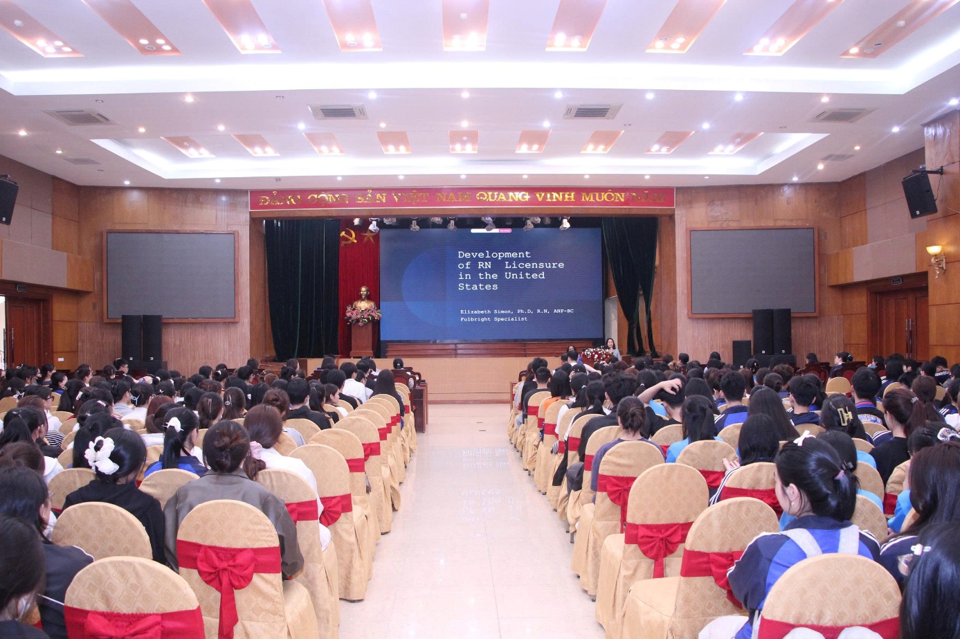 Trong bối cảnh dự kiến Kỳ thi cấp chứng chỉ hành nghề điều dưỡng sẽ được tổ chức tại Việt Nam vào năm 2028, buổi chia sẻ đã mang lại nhiều thông tin thiết thực và ý nghĩa, góp phần nâng cao nhận thức, tạo động lực và định hướng cho sinh viên trong quá trình học tập và phát triển nghề nghiệp hội nhập quốc tế.