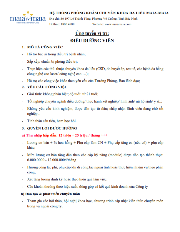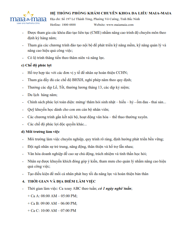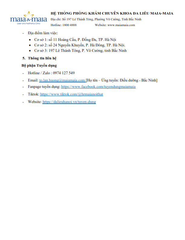 Hướng nghiệp - Việc làm Thông báo Tuyển dụng năm 2026 của Hệ thống Phòng khám chuyên khoa Da liễu Maia & Maia Author: xuan tran