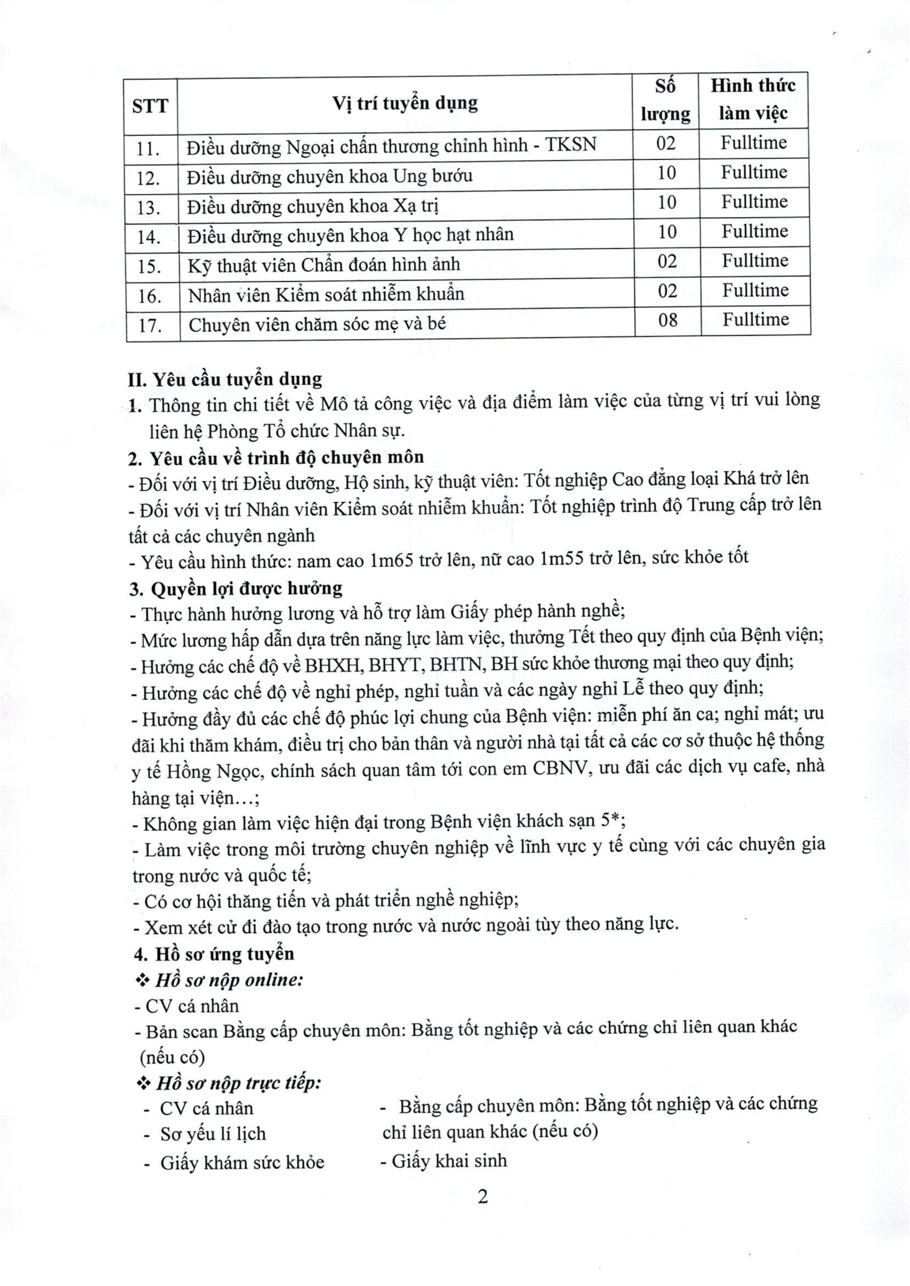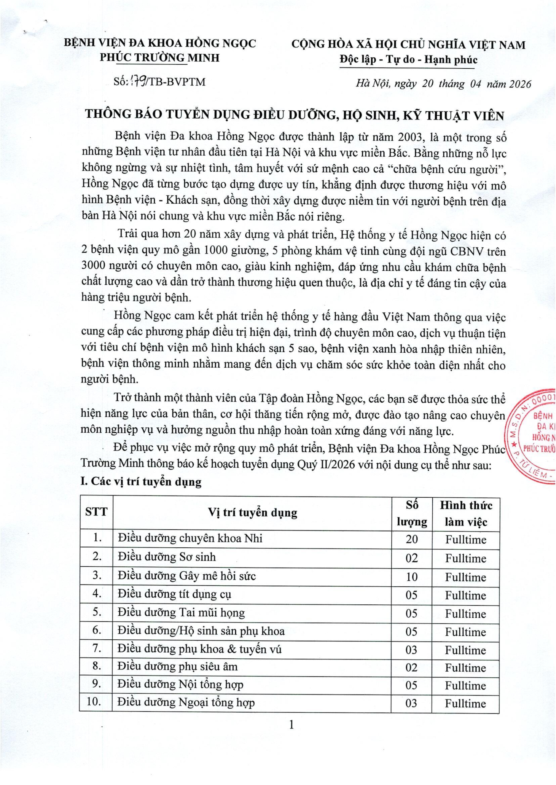 Hướng nghiệp - Việc làm Thông tin tuyển dụng của Bệnh viện Đa khoa Hồng Ngọc Phúc Trường Minh – Năm 2026 Author: xuan tran